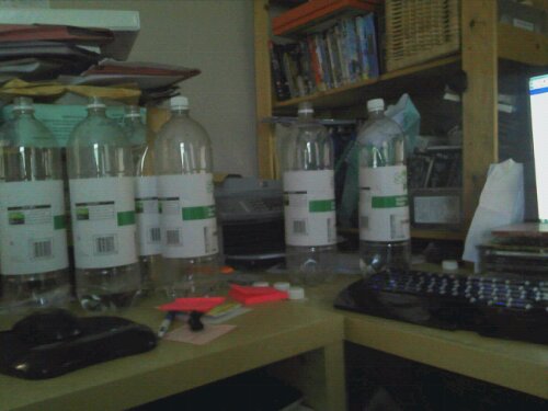 Ok im not the most tidy guy in the world but this demonstrates that I do drink my 2L of water a day. Its sparkling water but it is just water. Adding your tea, coffee, juice or whatever to your water intake does not count in my book. I usually carry about 30L in the car (which is my place of work) so I never run short. People do look at me a little funny buying 15-20 2L bottles of water at the supermarket but I dont mind.